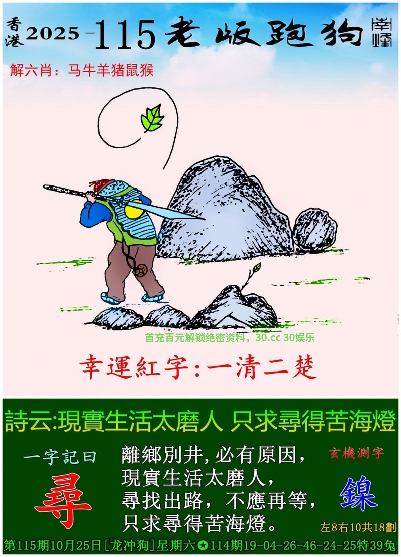 119期:助理玄机诗/简单好下注/台湾玄机诗/港台澳七肖/必中人物